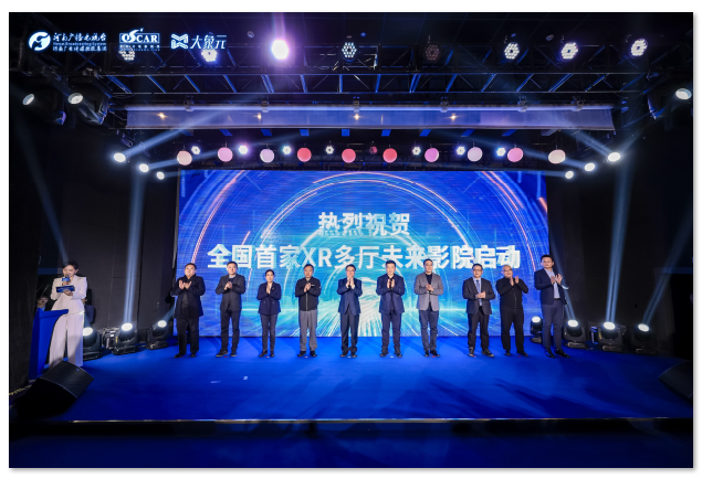 本报讯 “河南广电 新质视听”全国首家虚拟现实多厅未来影院启动仪式日前在西安奥斯卡国际影城骡马市店举行。奥斯卡大象元虚拟现实未来影院落户西安,将为观众带来前所未有的沉浸式观影体验,这是中国电影产业迈向未来的重要一步。中宣部电影局、河南省委宣传部、陕西省委宣传部、西安市委宣传部、西安市文旅局、西安市碑林区委、区政府和河南广播电视台相关负责人,以及供销大集集团股份有限公司、西安港口控股集团有限公司等合作伙伴近200人参加启动仪式。