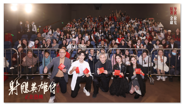 本报讯 1月29日,由徐克执导,傅若清担任总监制,肖战、庄达菲领衔主演的春节档热血武侠电影《射雕英雄传:侠之大者》正式上映,导演徐克、总监制傅若清、领衔主演肖战、庄达菲及主演张文昕携影片惊喜现身广州,与首批观众走心畅谈人物情感与拍摄幕后,热热闹闹共贺新年。截至2月5日,该片累计票房接近6亿元,淘票票9.7,猫眼9.6,微博大V推荐度93%,不少网友点赞影片质量:“影片展现了一个群雄逐鹿的宏图巨制,浪漫与热血,家国与大义”“经典音乐一经响起,一秒神穿,生命中的146分钟,纯粹地沉浸于一场江湖大梦”。