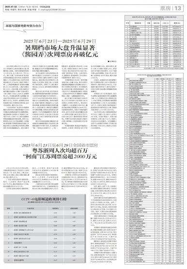 2025年第26周(6月23日-6月29日),多部新片上映成功激活大盘,暑期档渐入佳境。本周全国电影...