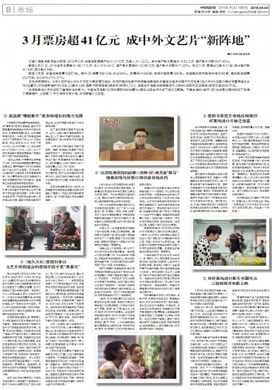 记者从国家电影资金办获悉,2019年3月,全国电影票房产出41.41亿元,观影人次1.22亿。其中国...