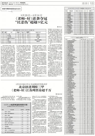 - 北京挤进周榜三甲 《老师·好》江苏周票房超千万