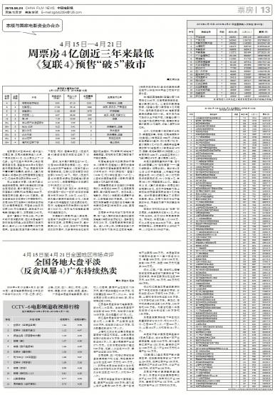 - 全国各地大盘平淡 《反贪风暴4》广东持续热卖