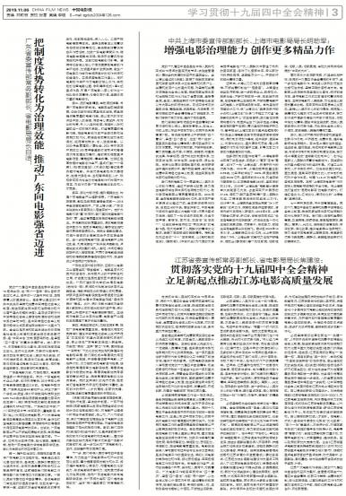- 贯彻落实党的十九届四中全会精神 立足新起点推动江苏电影高质量发展