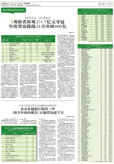 - 《勇敢者游戏2》1.7亿元夺冠 年度票房提前24天突破600亿