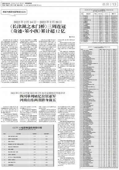 2022年2月14日至2月20日,全国电影票房排名上半区的十五省市依次为:广东、四川、浙江、河南、山...