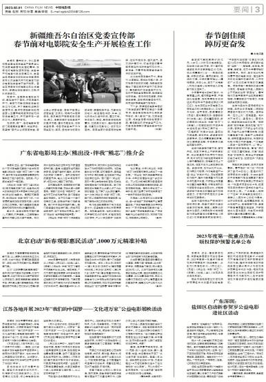 本报讯 2023年春节期间,由江苏省委宣传部、省电影局主办,省电影集团承办,江苏新希望农...