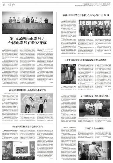 本报讯 8月15日,第十四届两岸电影展之台湾电影展在四川省雅安市开幕。作为国台办2023年的重点交流...