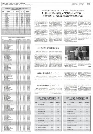 - 广东3.14亿元位居中秋国庆档第一 《坚如磐石》江苏票房近9300万元