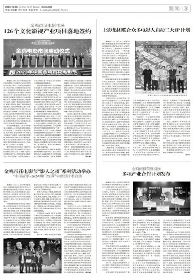 本报讯 日前,2023金鸡电影市场开幕式暨厦门文化影视产业项目签约仪式在厦门举行。中国文联党组成员、...