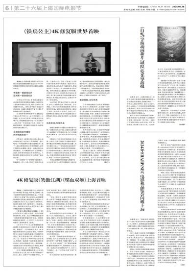 - 4K修复版《笑傲江湖》《喋血双雄》上海首映
