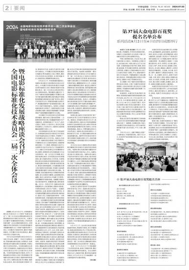 本报讯 6月26日至27日,全国电影标准化技术委员会(以下简称“电影标委会”)一届二次全体会议暨电影...