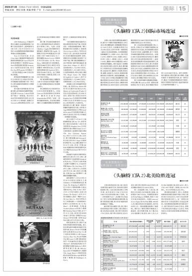 上周末,迪士尼/皮克斯的《头脑特工队2》在45个国际市场新增票房1.08亿美元,再次蝉联冠军,其国际...