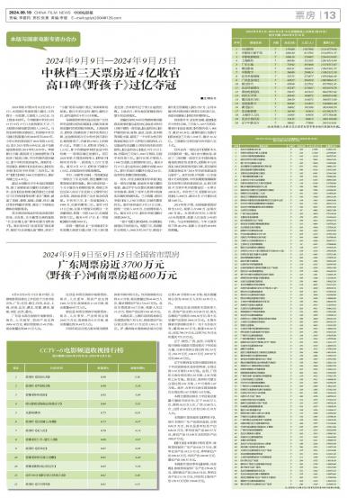 2024年第37周(9月9日至9月15日),本周因中秋放假周六调休,仅有周日一天假期,大盘收入2.8...